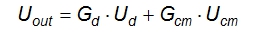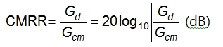 Gd是差分增益,常被設(shè)定為1。Gcm是共模增益。在理想狀態(tài)下,Gcm是零,輸出信號(hào)Uout是與共模電壓無關(guān)的。CMRR是兩個(gè)增益因子的比率(見方程5)。